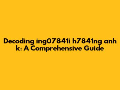 Decoding 'ing07841i H7841ng Anh K': A Comprehensive Guide