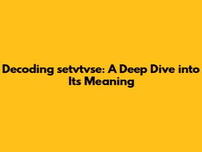 Decoding Setvtvse: A Deep Dive Into Its Meaning
