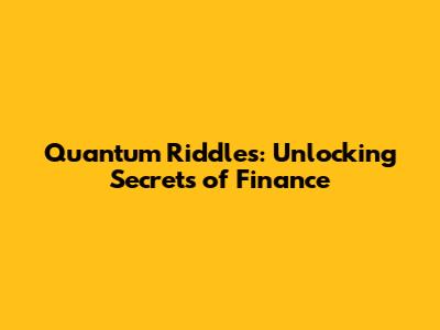 Quantum Riddles: Unlocking Secrets Of Finance