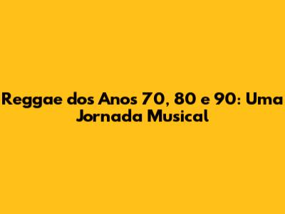Reggae Dos Anos 70, 80 E 90: Uma Jornada Musical