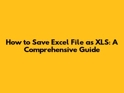 Save Excel As XLS: A Quick Guide